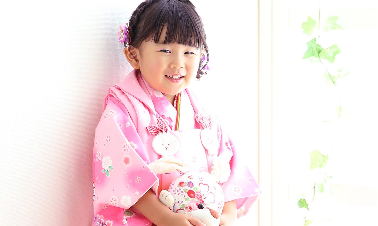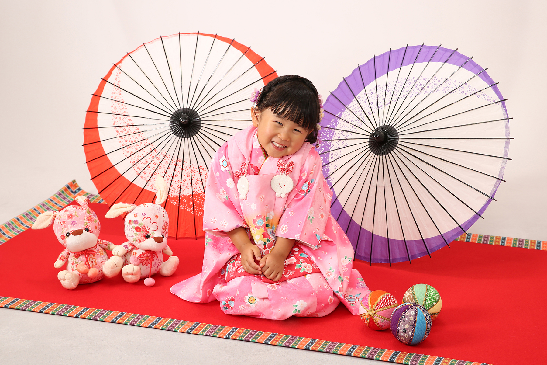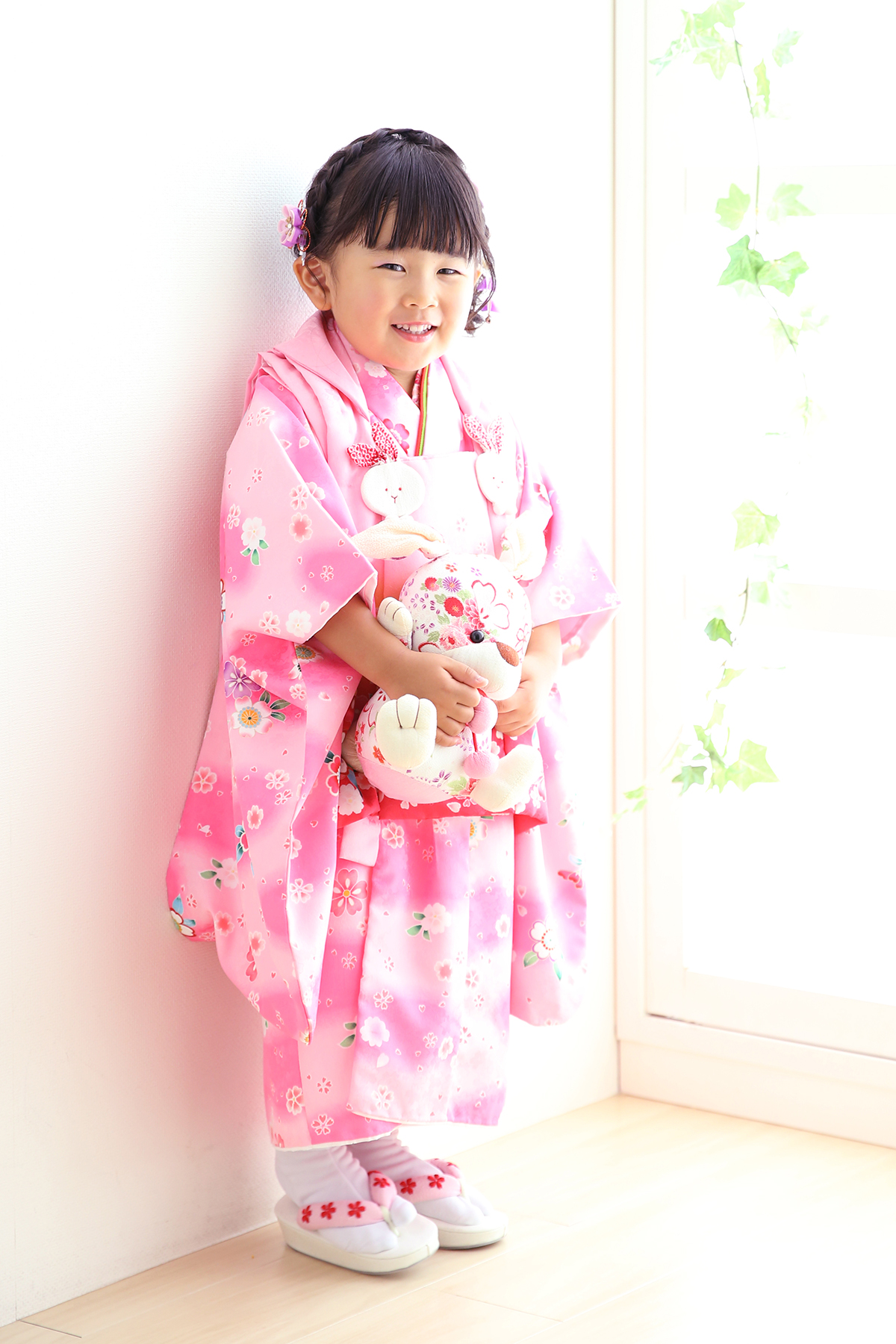 ウサギちゃんが付いているピンクの着物で可愛く前撮りをしました(*^^*)