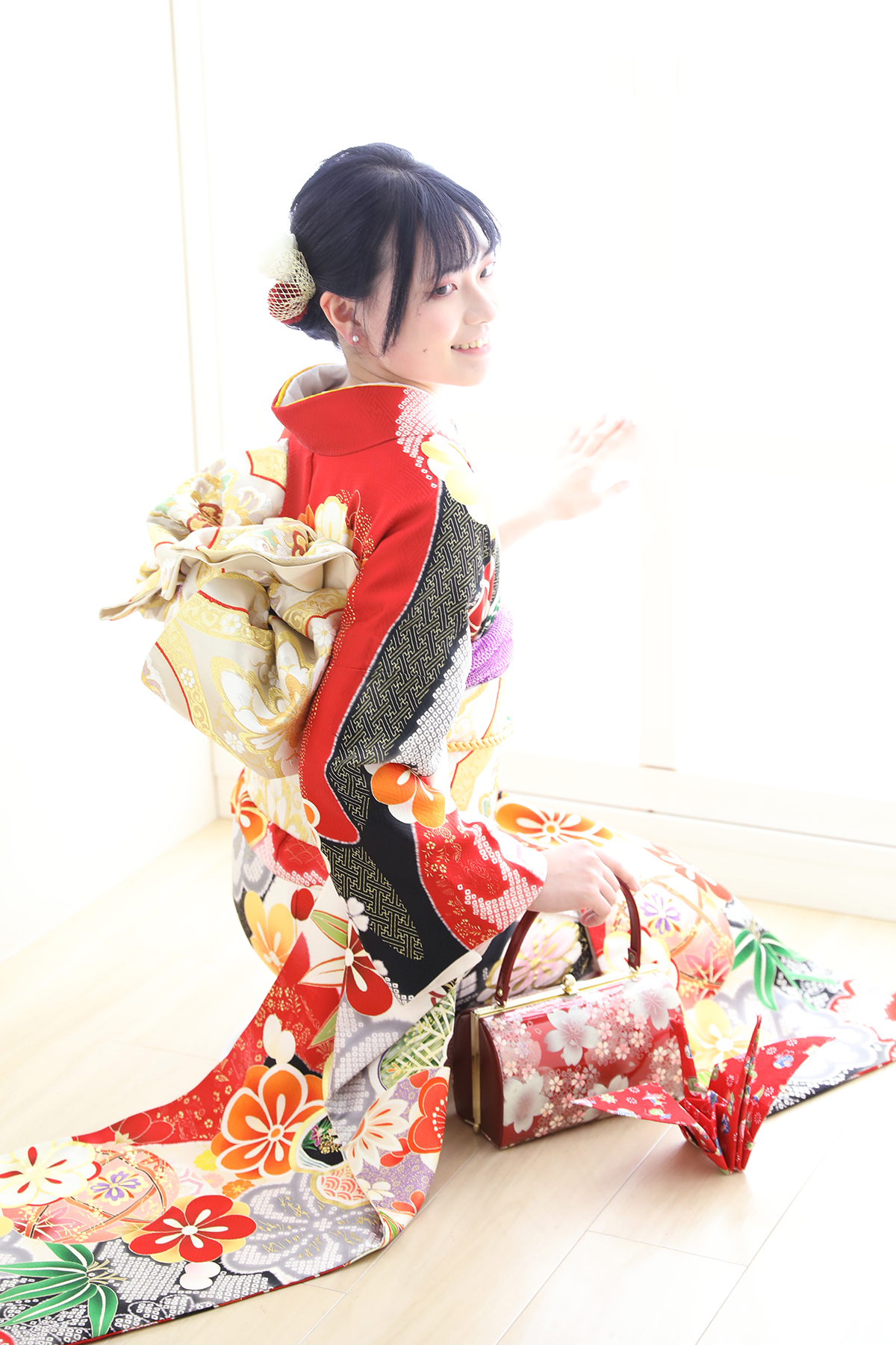 白・赤・黒がメインの華やかな振袖を着こなしていただいたお嬢様✨