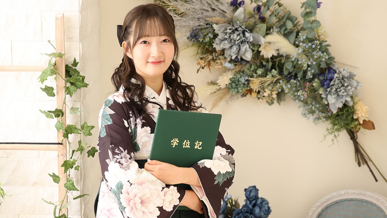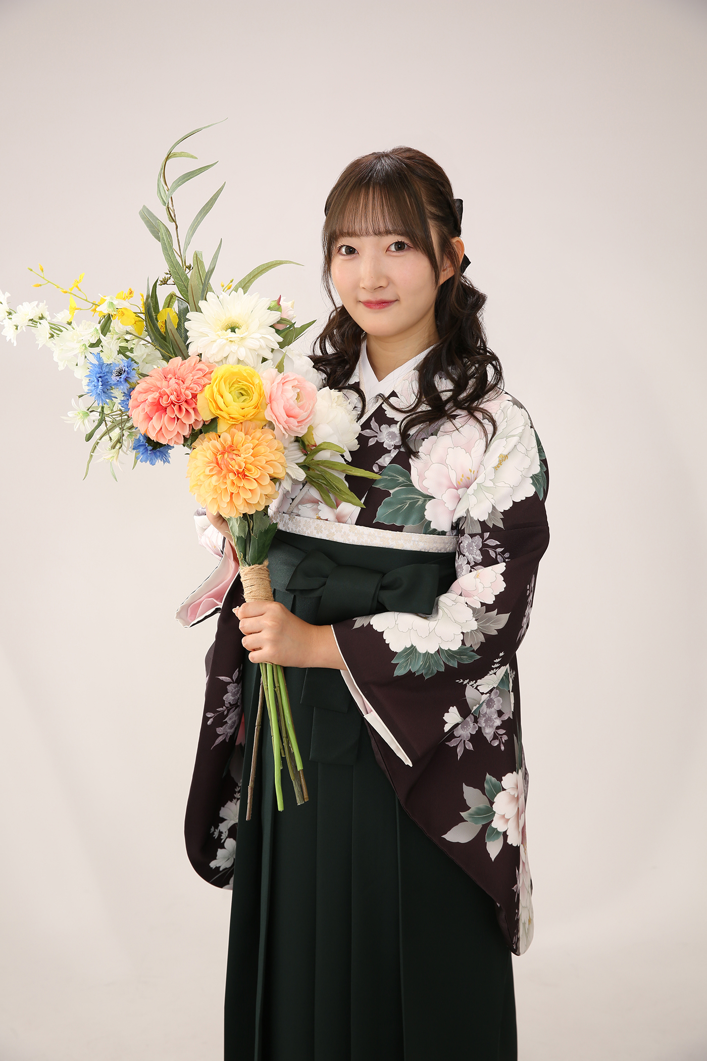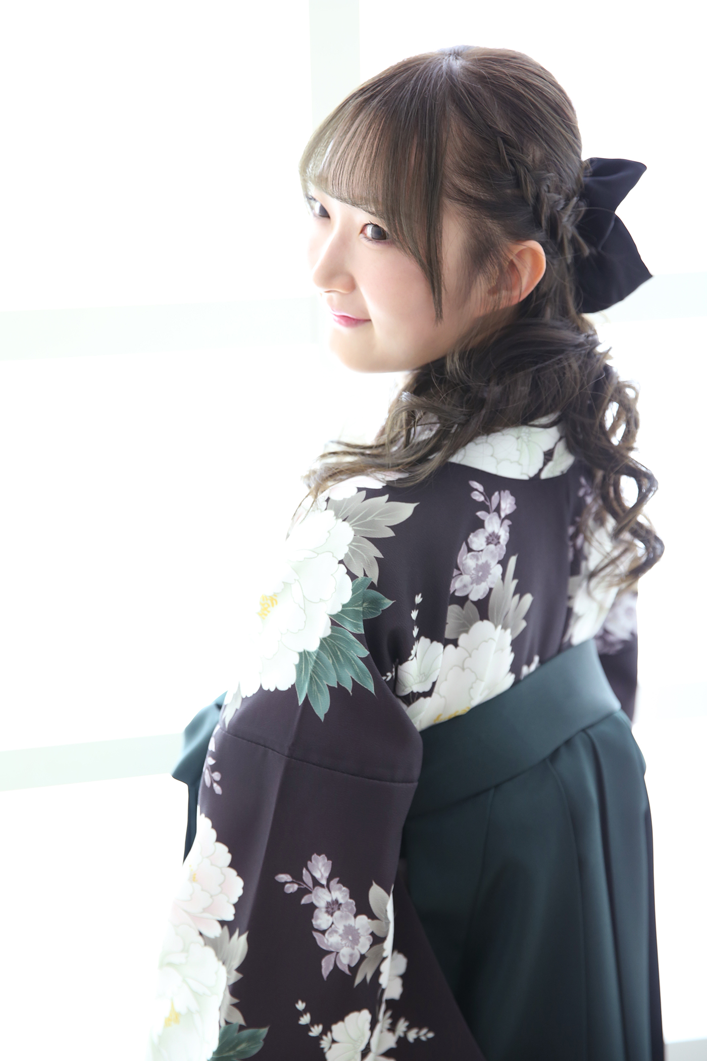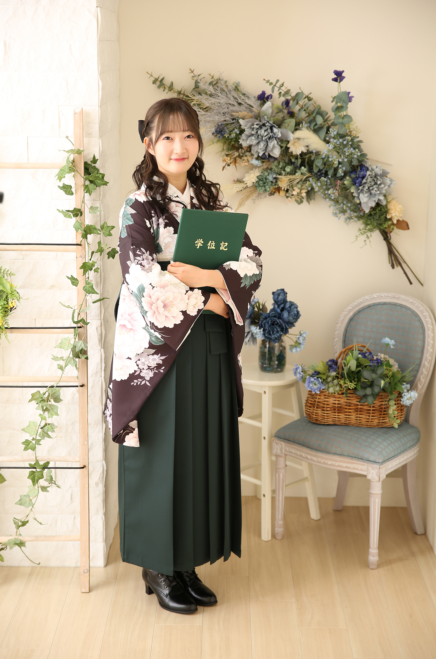 ダークグリーンの袴がとってもオシャレなコーディネート!