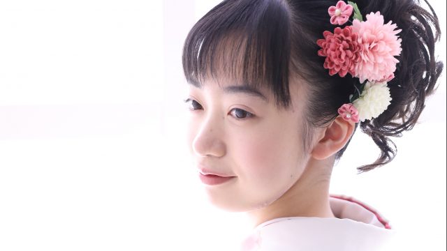 髪飾りはお着物に合わせた薄紫のお花🌸