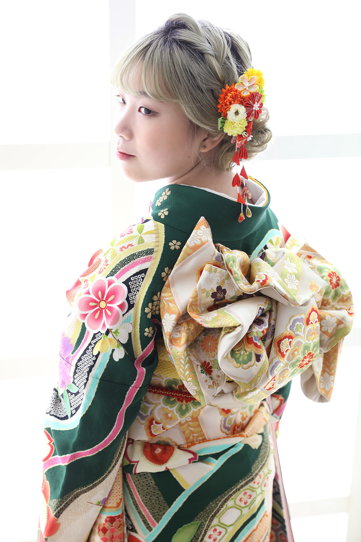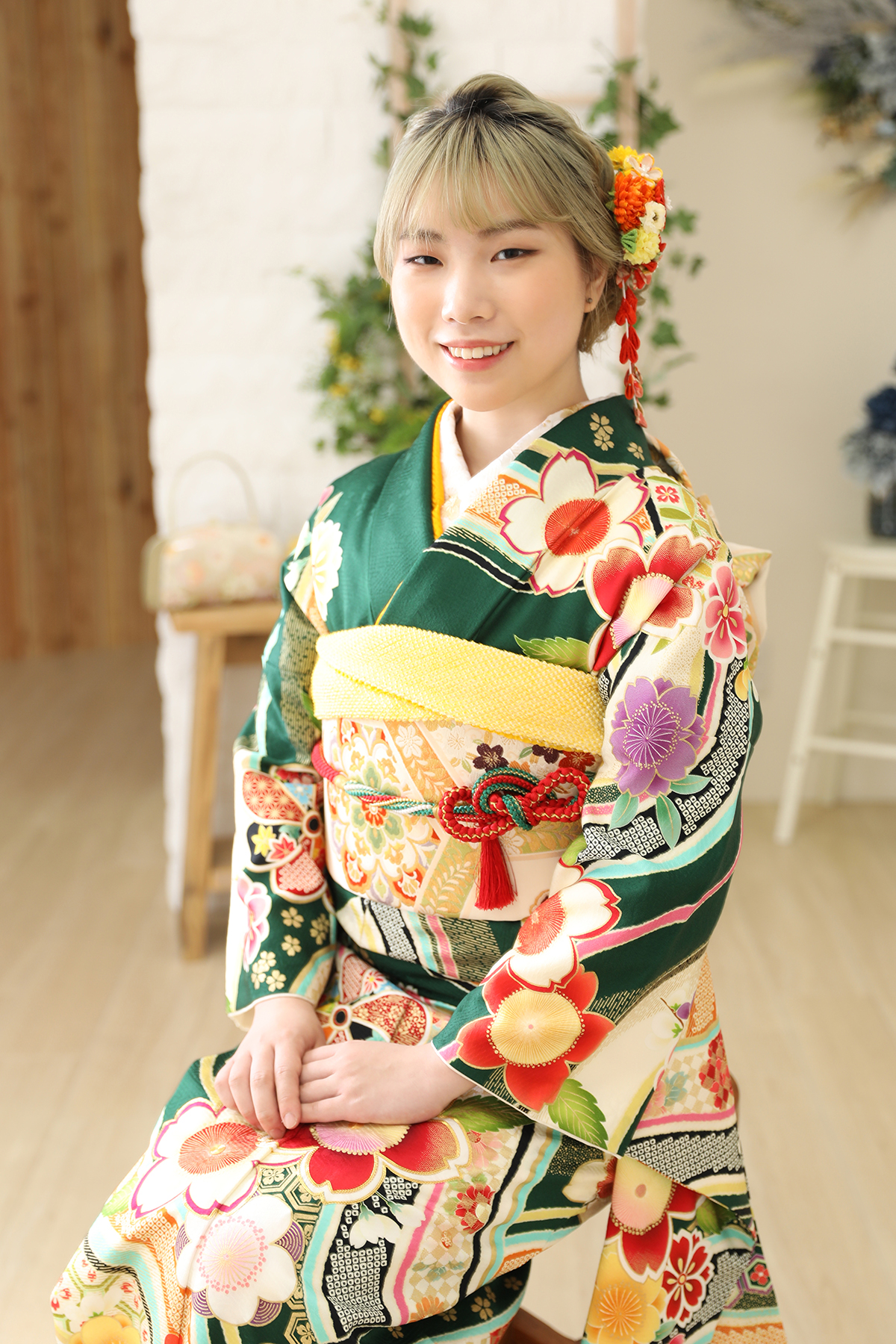 濃緑の振袖で二十歳のお祝いを!成人式!