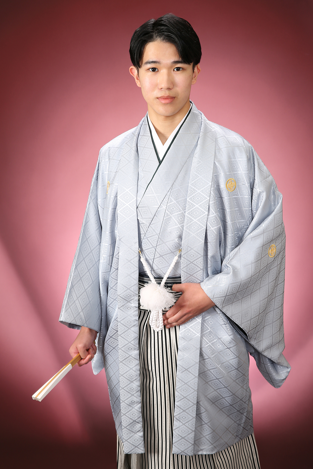 男性成人様の撮影☆シルバーの紋付袴でかっこよく(*^^*)
