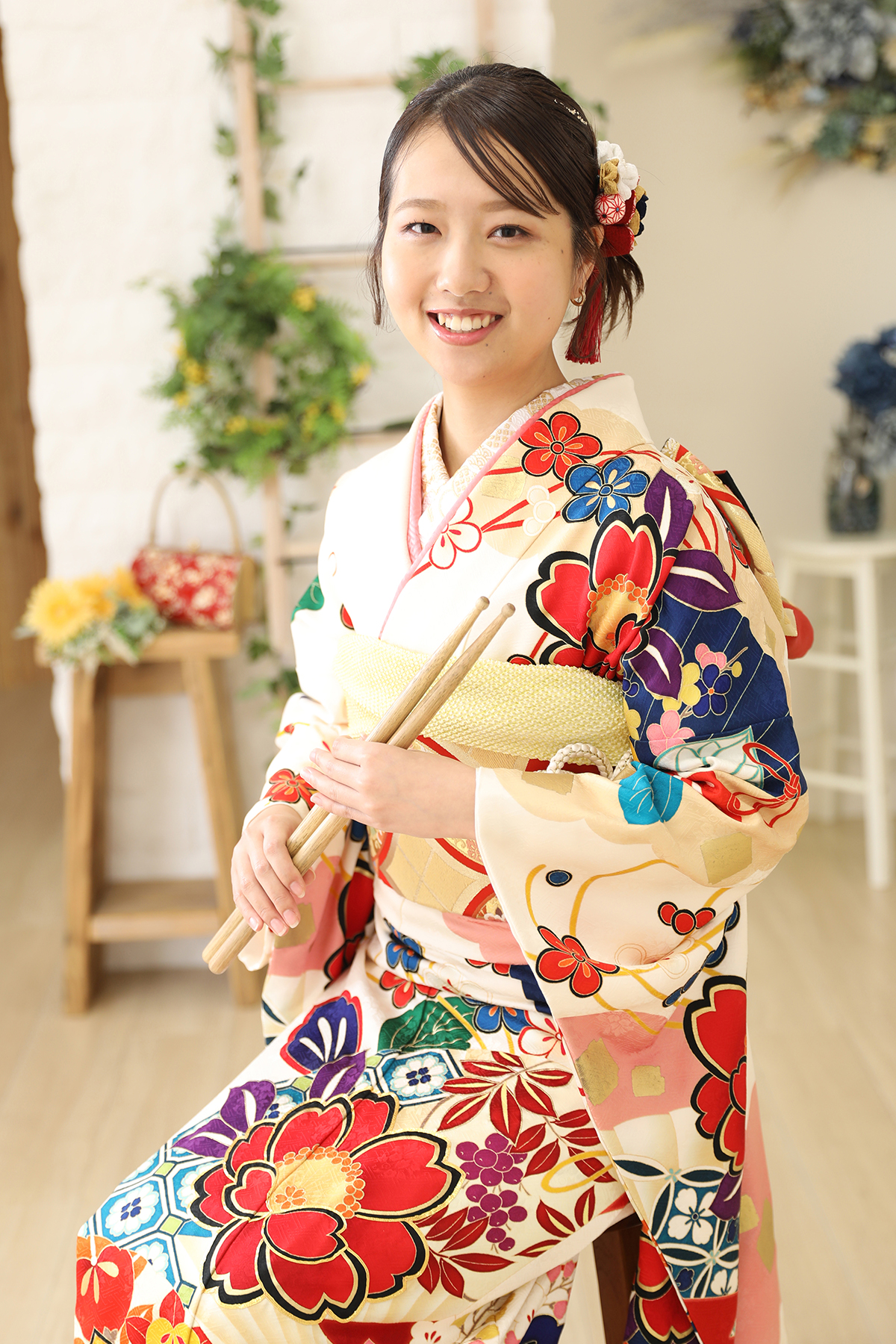 こちらの白の振袖を華やかに可愛く着こなしてくれたお嬢様💕