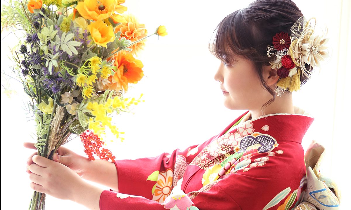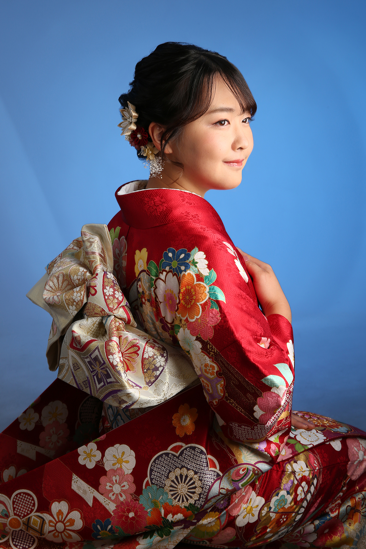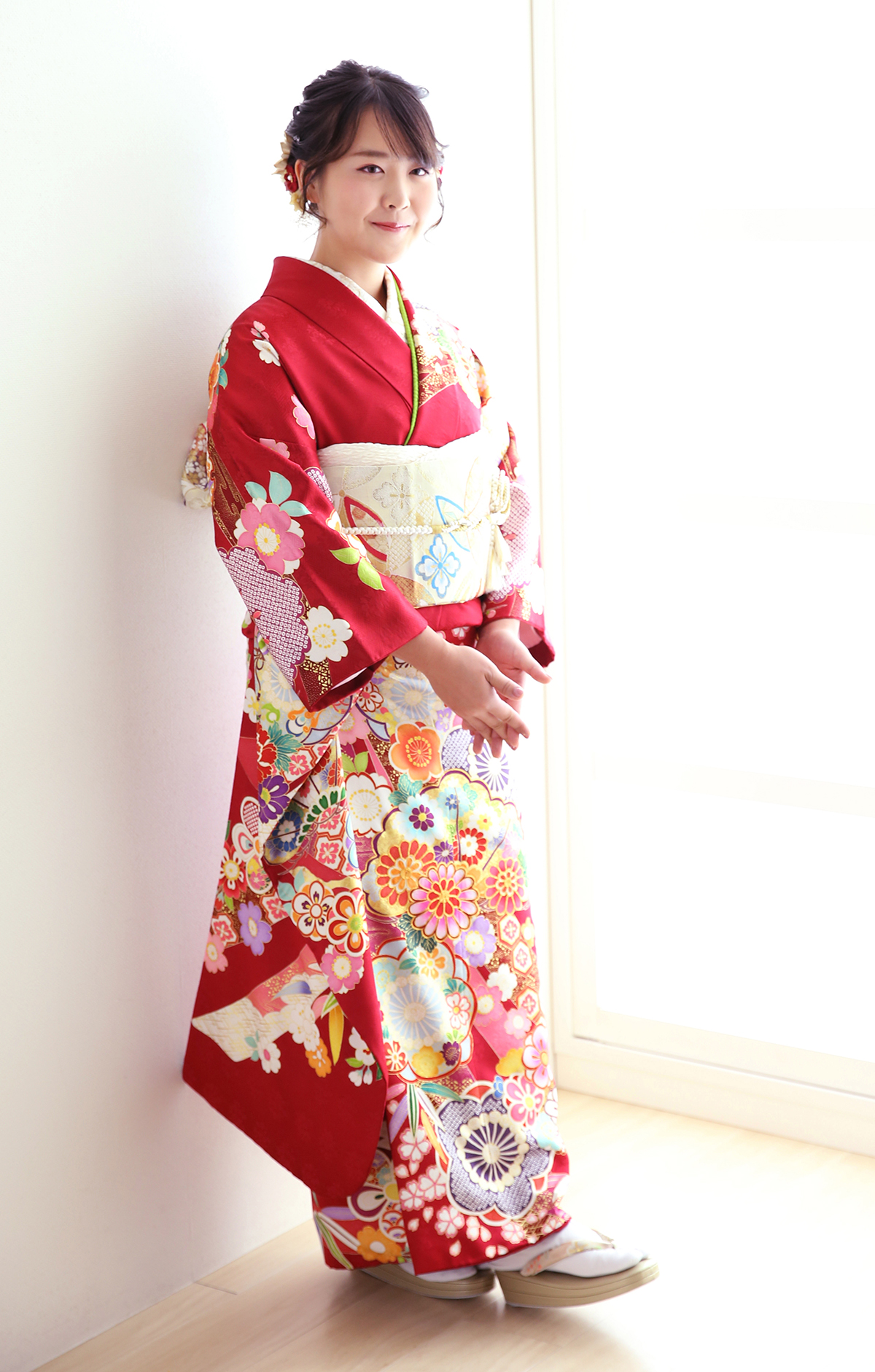 赤の振袖で成人式の前撮り撮影(*^^*)