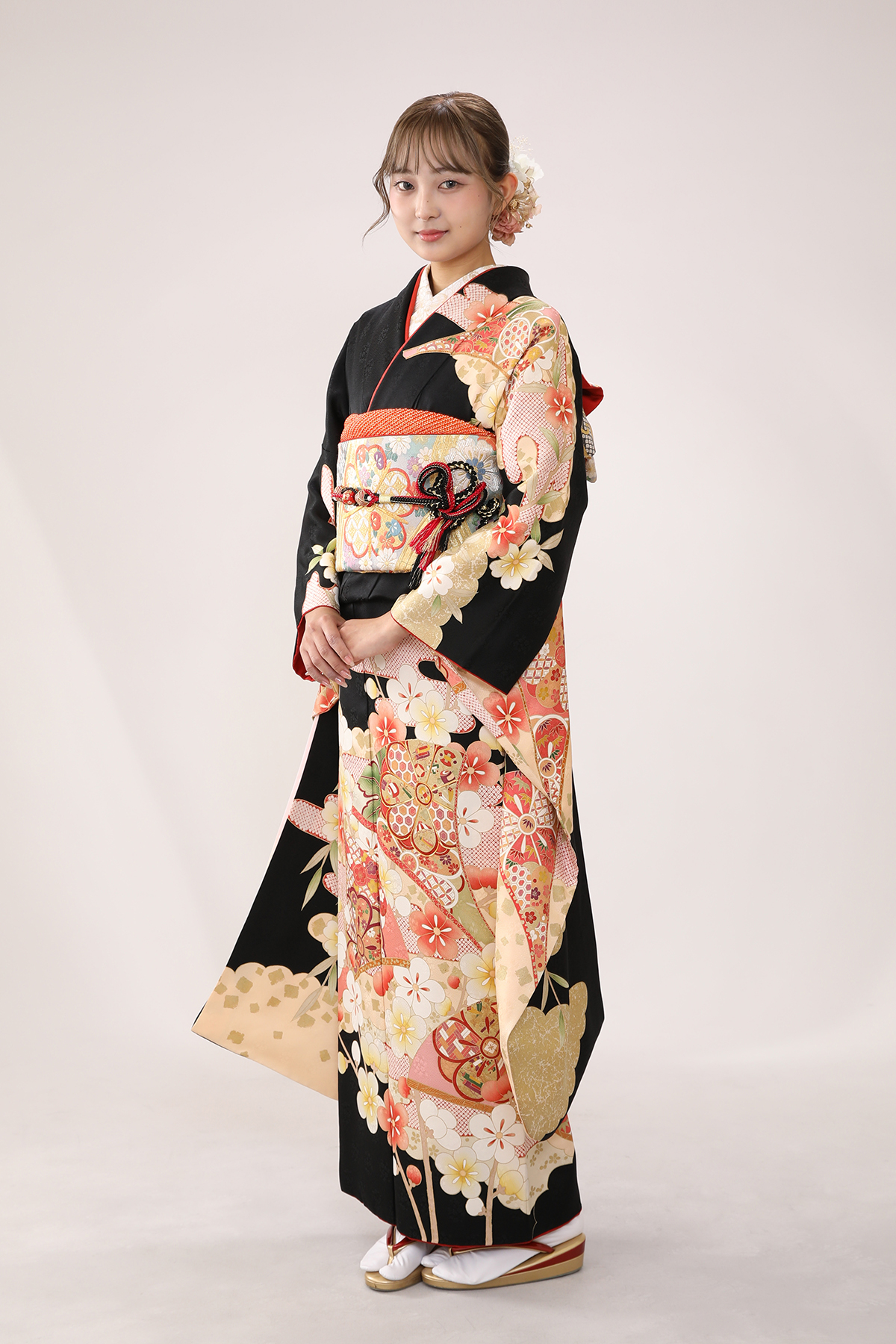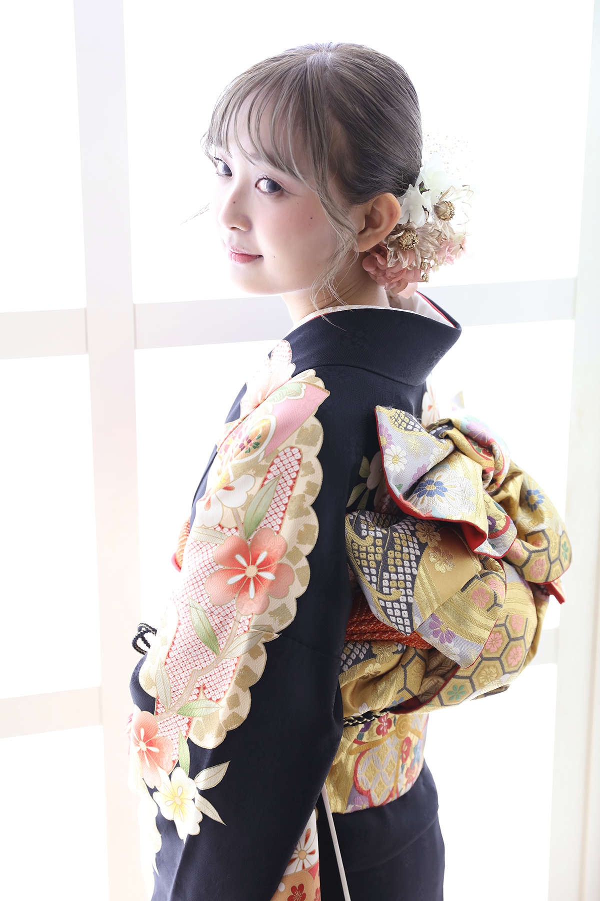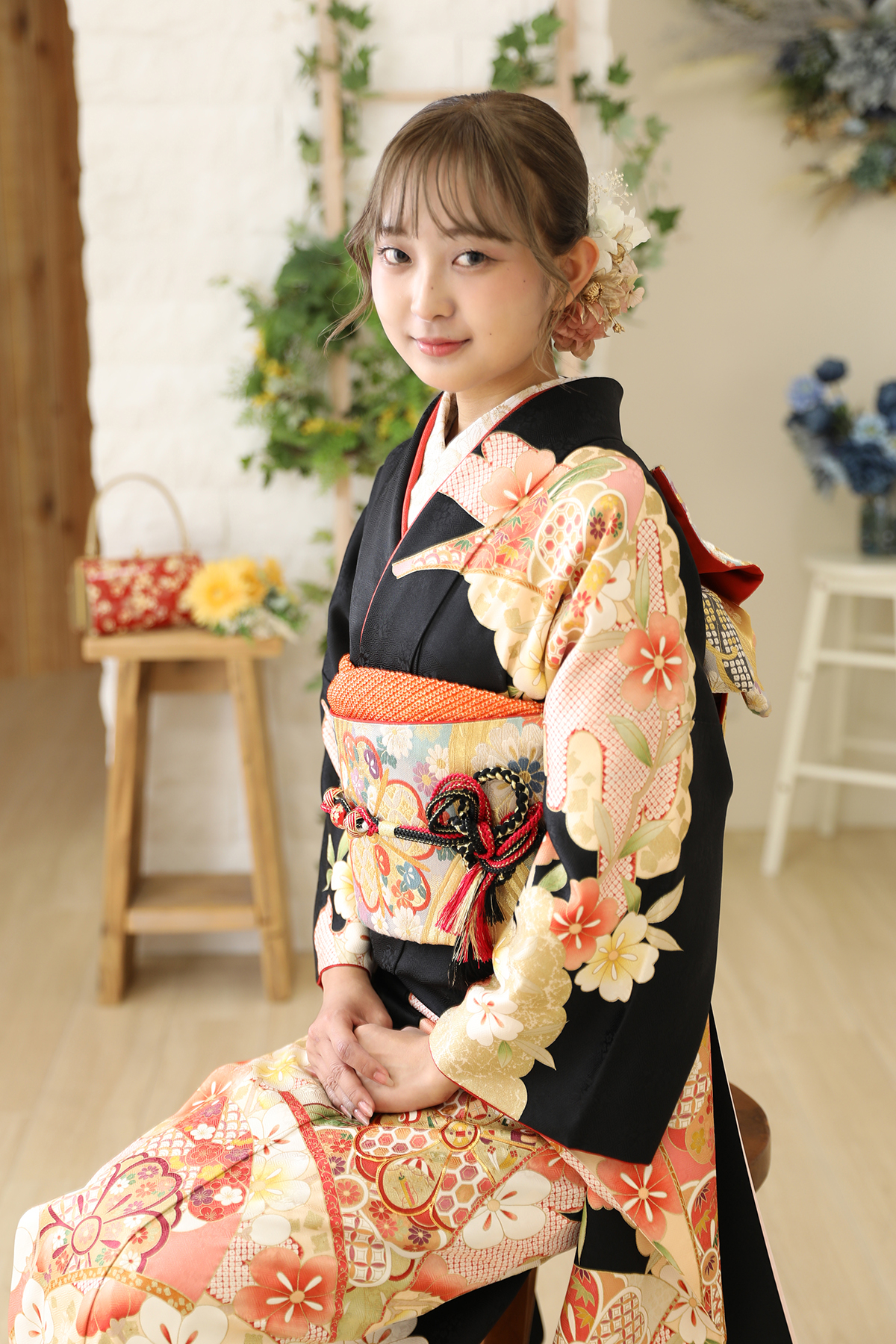 黒地で大人っぽく、柄は華やかで可愛い振袖を着こなしてくれたこちらのお嬢様💕