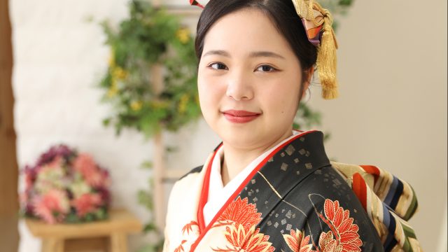 濃緑×古典柄の振袖で成人式の前撮り撮影を!