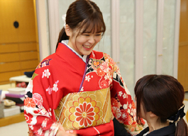 着崩れなどがないよう、丁寧にお着付けいたします。
