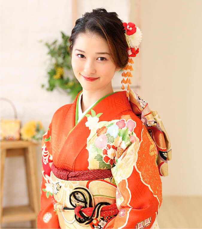 衣装選びや前撮り撮影など、お客様と過ごす貴重な時間を大切にして一人一人に寄り添ったご対応をさせて頂いております。また当社の振袖は全て正絹(絹100%)、そして正統派古典柄を中心に、ブランド品も数多く取り扱っております。