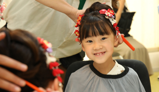 事前の内覧で子供好きのスタッフと楽しくお話ししながら何着でも試着ができるのでお子さまもお着物に慣れることができて安心です。スタジオも同じスタッフたちが担当しておりますので、撮影でまた会えるのが私たちも楽しみです。お母様・お父様の着物がある方もお気軽にご相談ください。