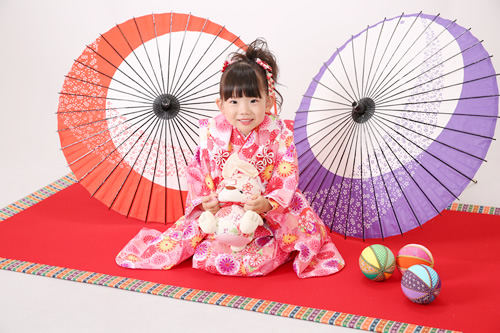 女の子が髪をきちんとのばして整える「髪置の儀」 こそでやの豊富な七五三衣装、三歳の衣装は約50点!